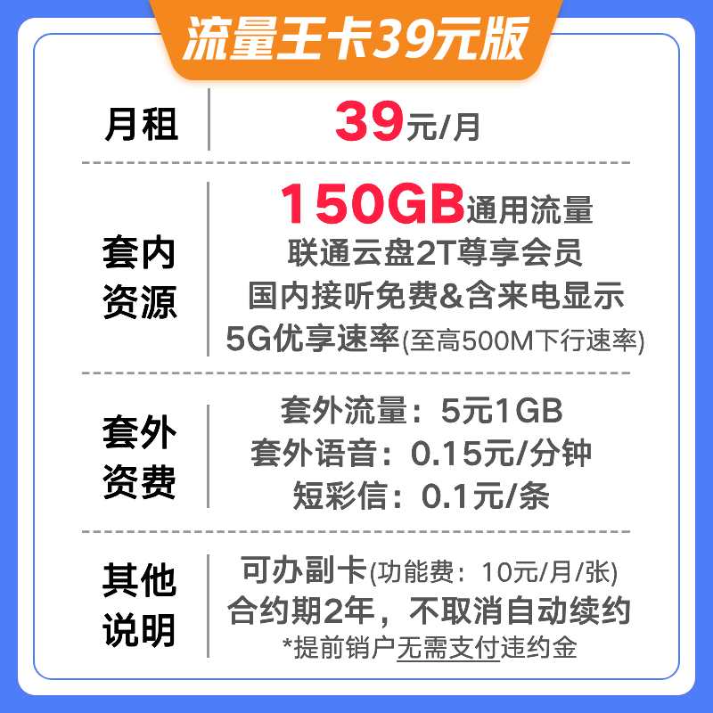 联通流量王卡升级版150G大流量卡手机号网卡低月租可选号浙江包邮