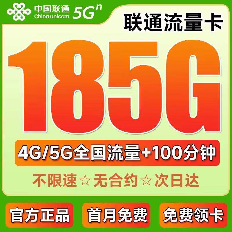 中国联通流量卡纯流量上网卡全国通用大流量不限速手机卡电话5G卡
