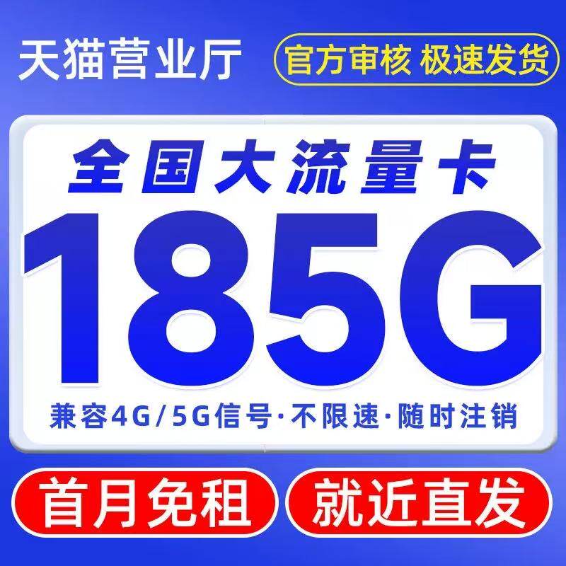 杭州流量卡4G5G电话卡手机卡185G浙江畅游卡上网卡无线限全国通用